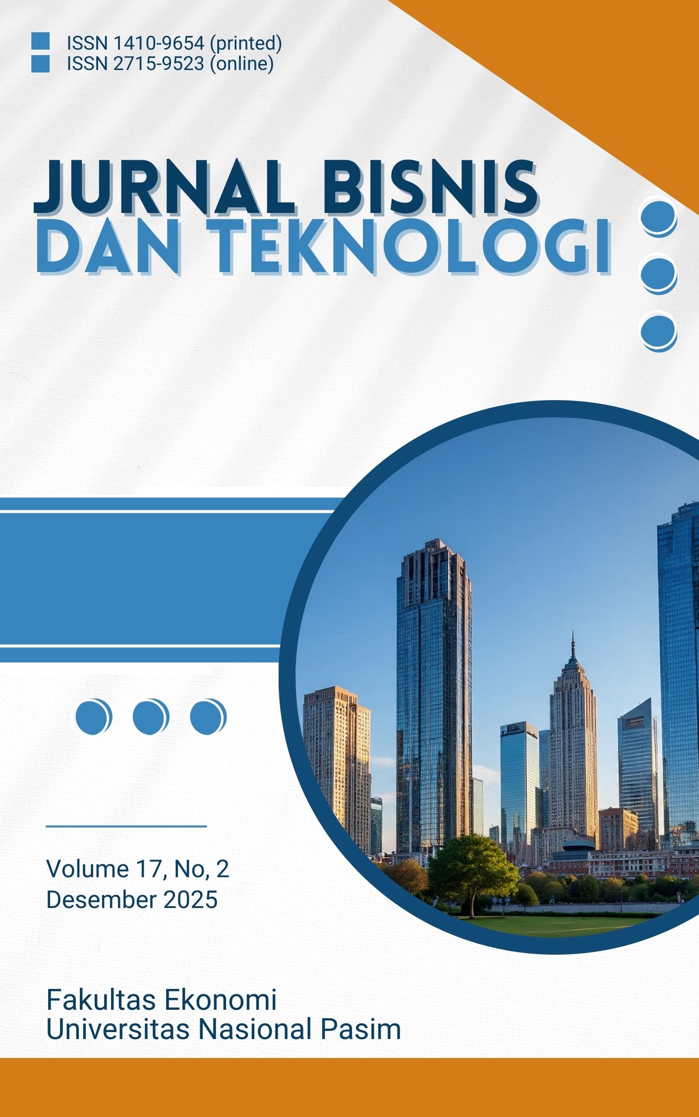 Vol 17 No 2 (2025)Jurnal Bisnis dan Teknologi (JBT) merupakan jurnal ilmiah yang berfokus pada pengembangan ilmu pengetahuan, teori, dan praktik dalam bidang ekonomi dan bisnis. Jurnal ini bertujuan menjadi wadah publikasi bagi akademisi, peneliti, praktisi, serta mahasiswa untuk menyebarluaskan hasil penelitian, kajian konseptual, maupun studi kasus yang relevan dengan isu-isu terkini di bidang ekonomi, manajemen, kewirausahaan, keuangan, pemasaran, sumber daya manusia, dan bidang terkait lainnya.